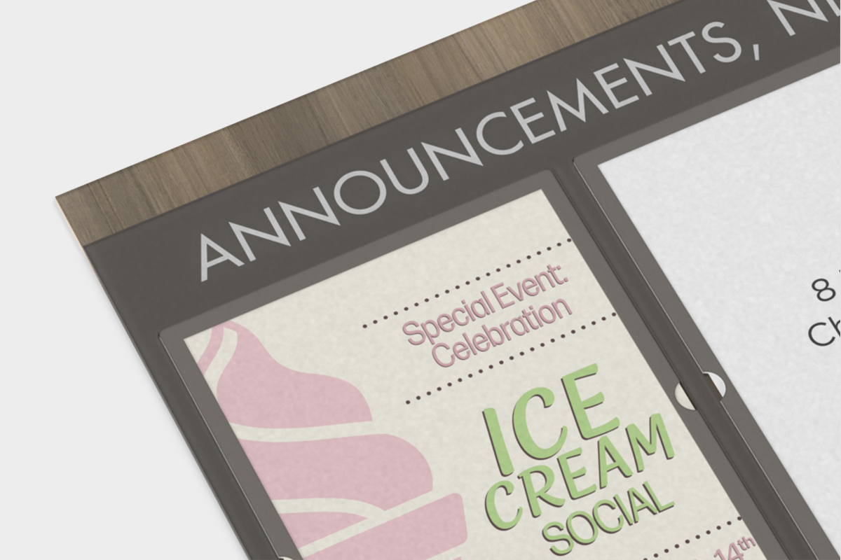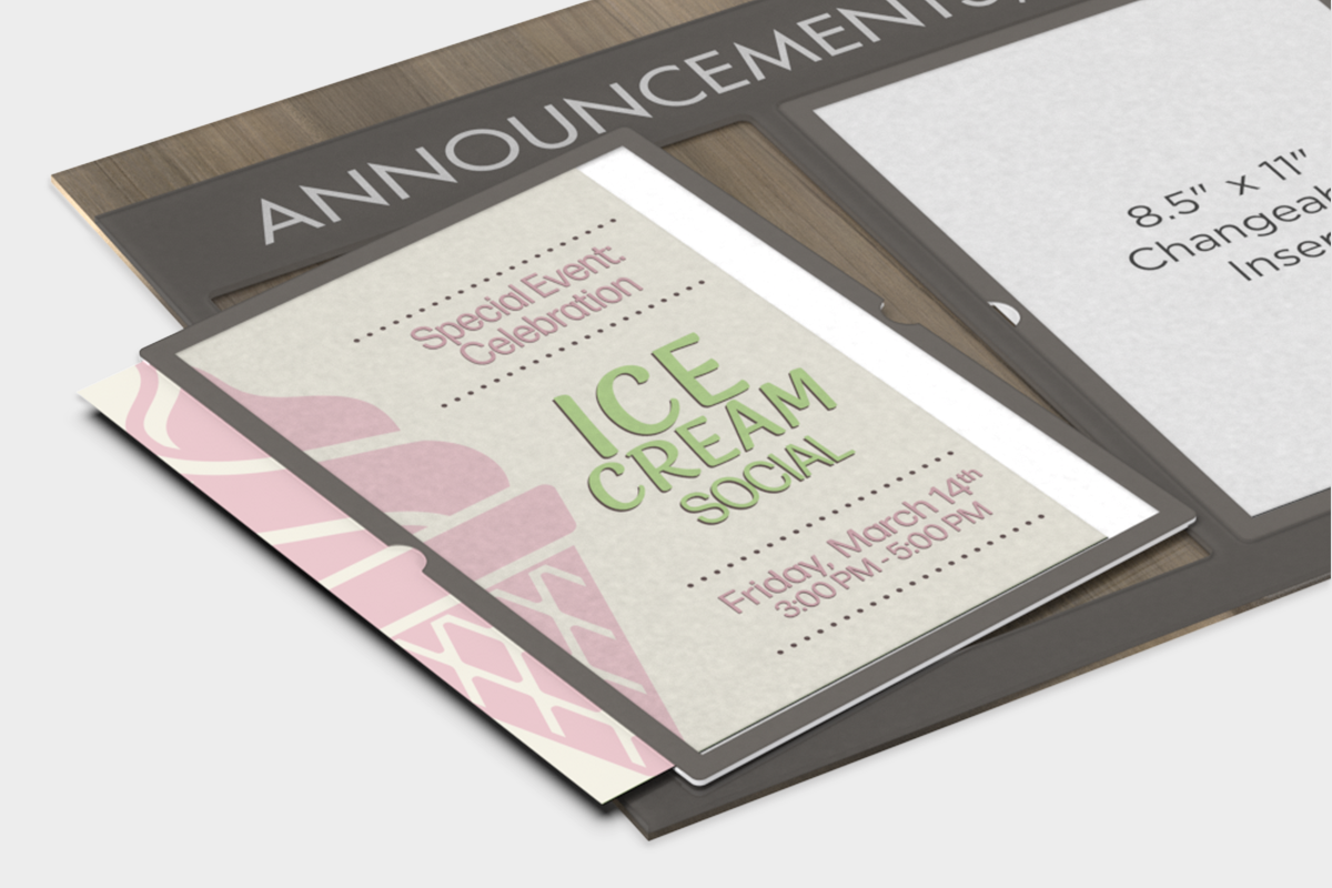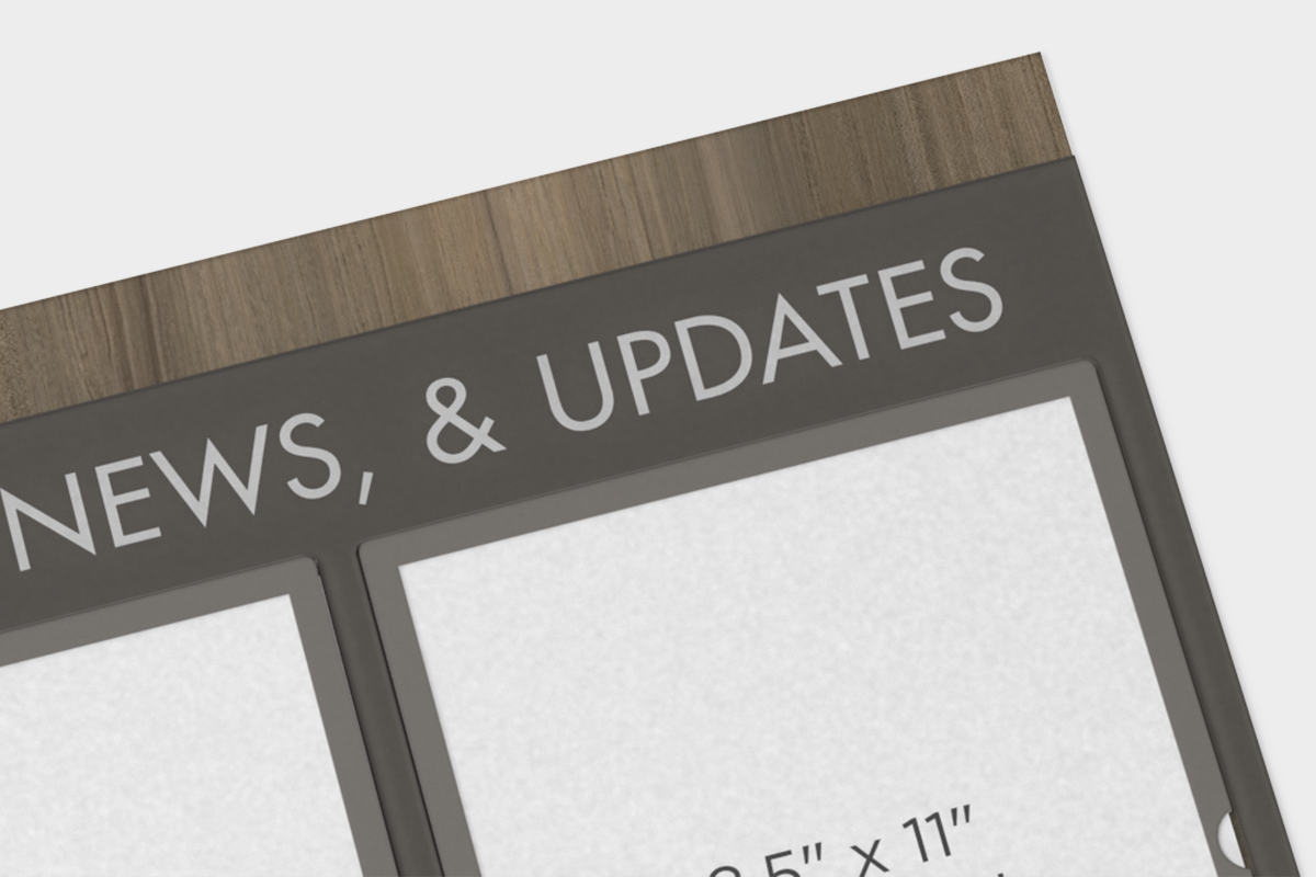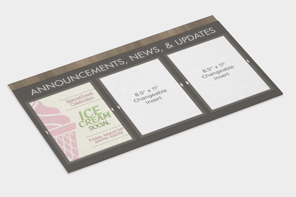 • Three insert holders with protective lens covers accommodate printed 8.5" x 11" pieces of standard paper.