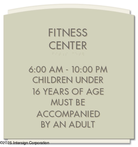 - Customize up to 9 lines of text. Suggested phrases: "Waiting Room," "Fitness Center," "Mechanical Room."