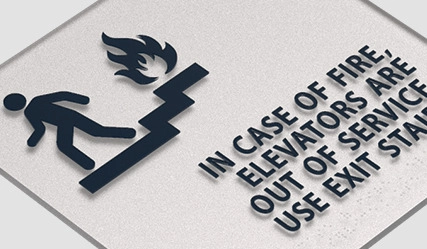 in case of fire, elevators are out of service... w/no braille